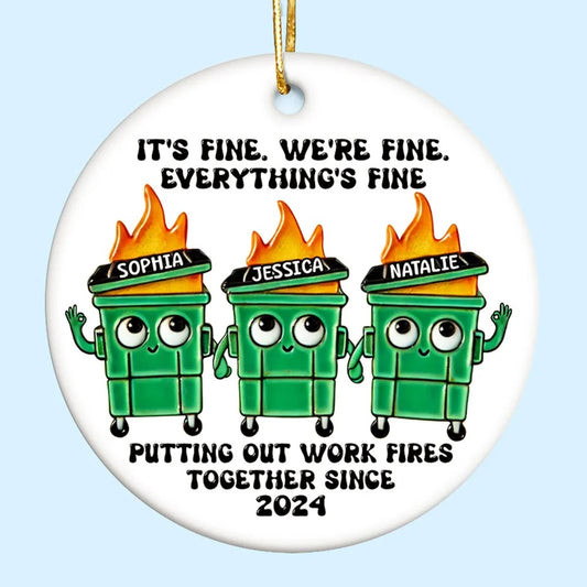Putting Out Work Fires Together Work Bestie Dumpster Fire Funny Gift For Colleagues - Personalized Ornament
